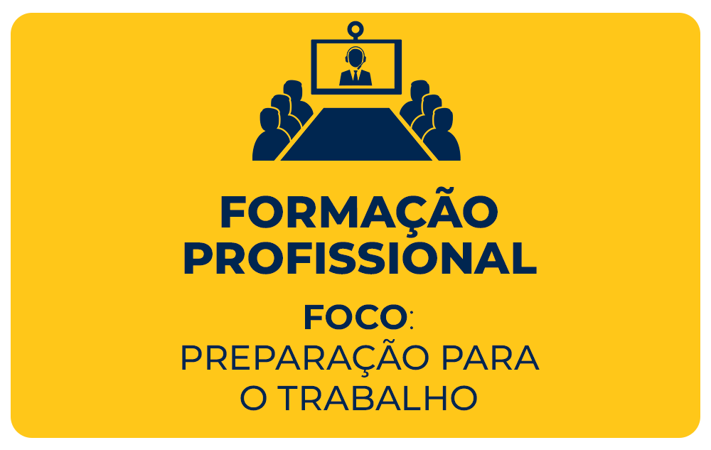 O aluno estuda as disciplinas específicas da profissão para a certificação durante o ano e as disciplinas do curso.